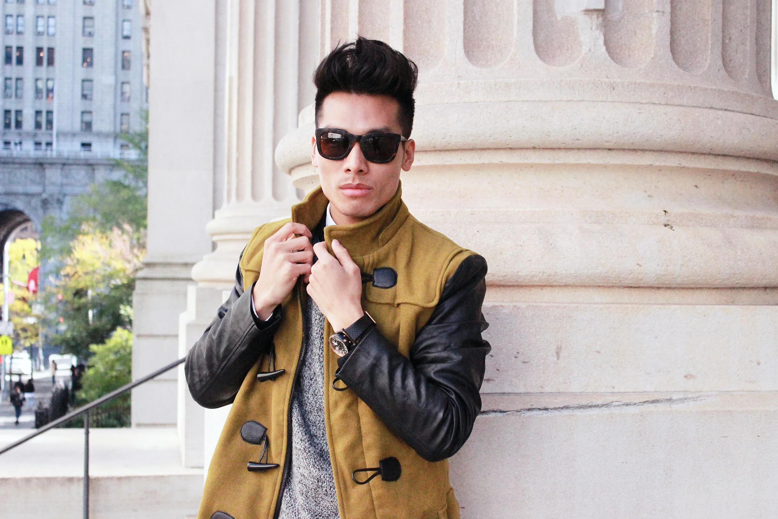 For all of that, I trust CT Scuderia, getting me to where I want to be in the city without ever being late. Whenever I have such a detailed and beautiful piece like this watch. I’d like to dress around it so that way it would be the center of my outfit and there is no clashing with my look. For that, I like to keep it simple with just black jeans and texture sweater. To finish this look I added in a long color block coat for some color and layering affect to this whole look.